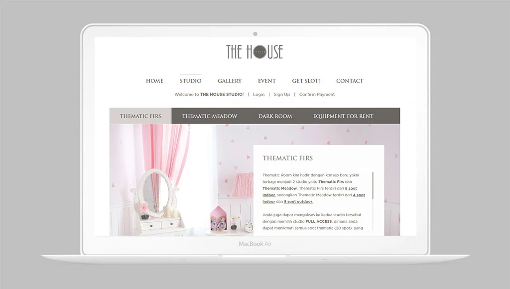 The House Studio is a photography studio that specialized in photoshoot and photo studio renting for those in need of Pre - Wedding & Wedding Photoshoot, or any other events. With its favorite Thematic and Meadow Studio, now you can do a wide range of photoshoot based on your preferences and needs.